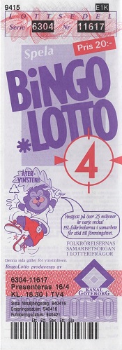 - Lyckonummer 1 (Älvsereds postorder): ****-19481, ****-10633, ****-11302, ****-11231, ****-18218