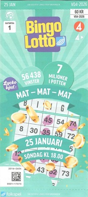 Sponsorvinjett spelas upp. Videoklipp med en vinnare spelas upp. Lotta välkomnar tillbaka. Lotta påminner att man kan ringa in på Miljonhjulet. Lotta snackar med Uno. Lotta startar treans bingo. Husbandet spelar musik och bilder från studion, tittare och vinstplanen visas. Lotta uppmanar tittare som fått bingo att ringa in på. Lotta snackar med husbandet. Lotta uppmanar tittare som inte fått bingo att ringa in på Slutspelet som hon avslöjar är Mat 25.000 kr och två vinnare dras. Uno Svenningsson uppträder. I bild påminner man att ringa in på Slutspelet om man inte fick bingo. Lotta påminner att man inte kan ringa in på Slutspelet om man inte fick bingo. Lotta pratar med telefonörer, första väljer Uppland. I bild påminner man att ringa in på Slutspelet om man inte fick bingo. Andra har dubbellott och väljer Gotland. Lotta kör Miljonhjulet med spelaren som vinner Resa 75.000 kr. Lotta lottar ut Finalspelet på ett serie och lottnummer. Lotta påminner att man kan ringa in på Slutspelet om man inte fick bingo. Lotta snackar med Uno. Lotta uppmanar tittarna att rätta lotten och berättar om Extrachansen DeLuxe. Lotta berättar vad som händer nästa vecka. Lotta tackar för idag. Sluttext rullar och vinjetter spelas upp.